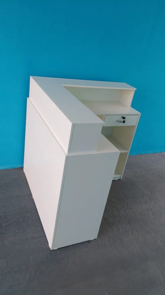 Balcão Caixa em L Rico é fabricado em MDF de 15mm